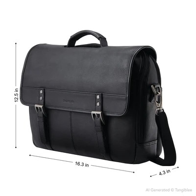 - Classic double buckle business satchel; fits up to 2 laptops up to 15.6"