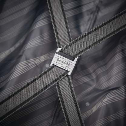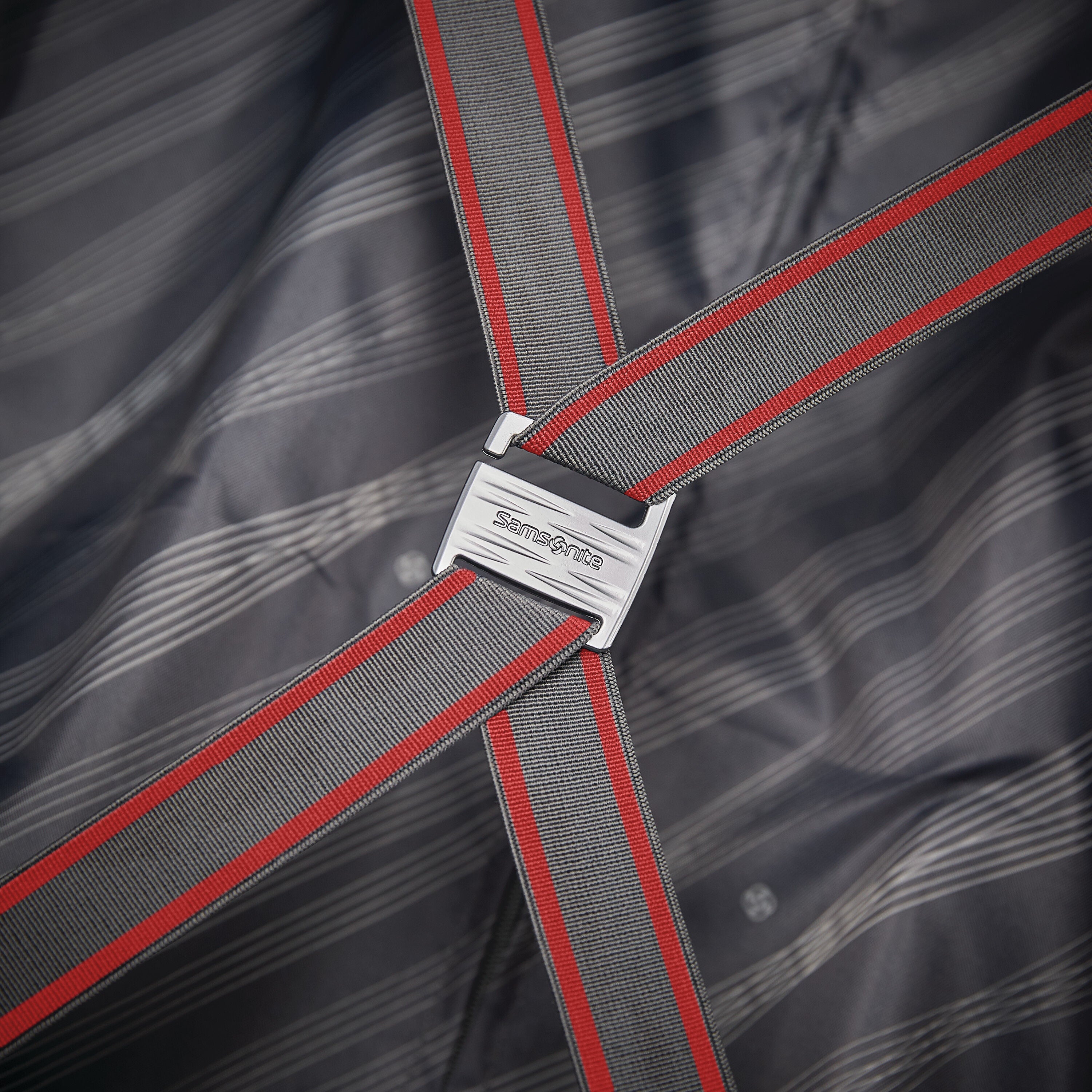 - Spacious packing compartments feature elastic cross straps custom designed with a pop of color to match exterior and zipped divider panel