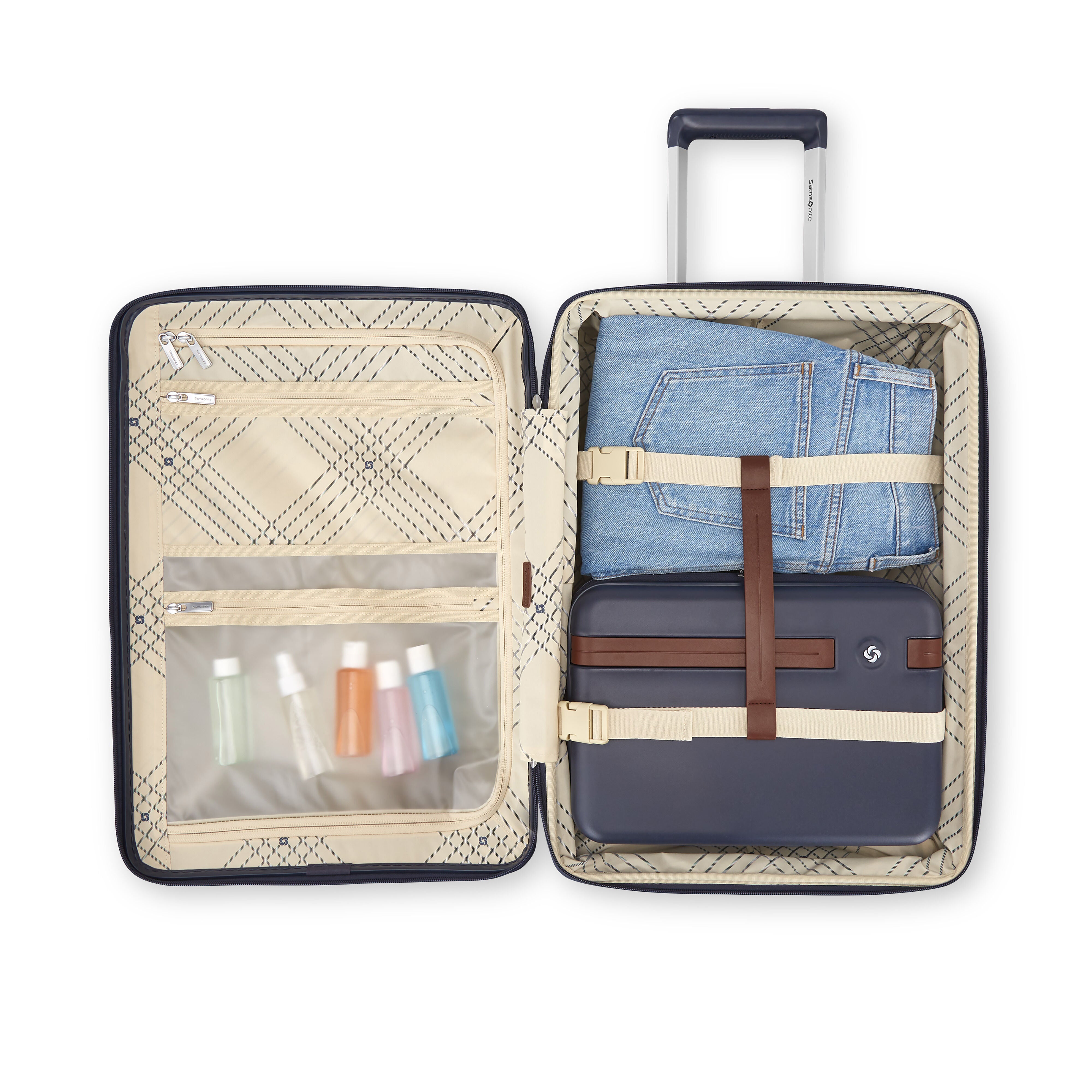Elevate your carry-on aesthetic with the Virtuosa Expandable Carry On. Featuring expansion, a TSA integrated lock, RightHeight™ handle, dual spinner wheels, and sleek leather-like accents, this case is the ultimate stylish addition!