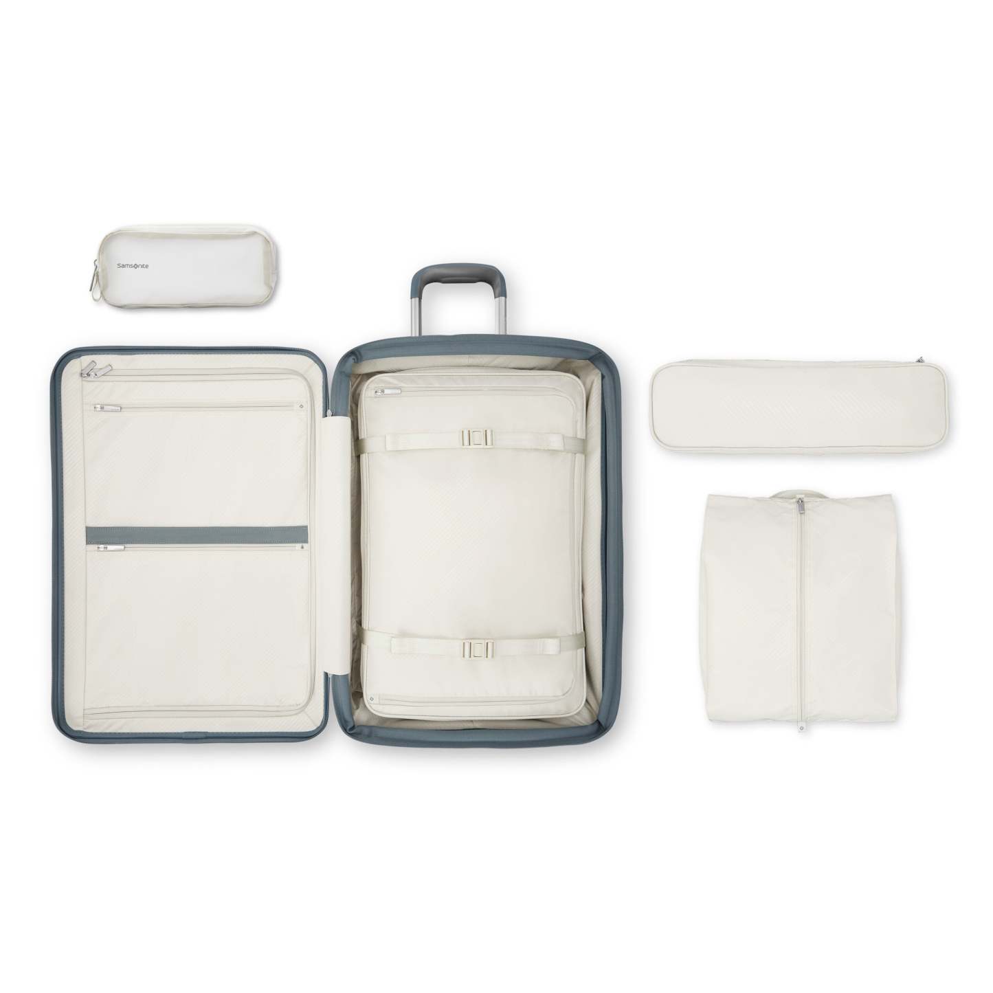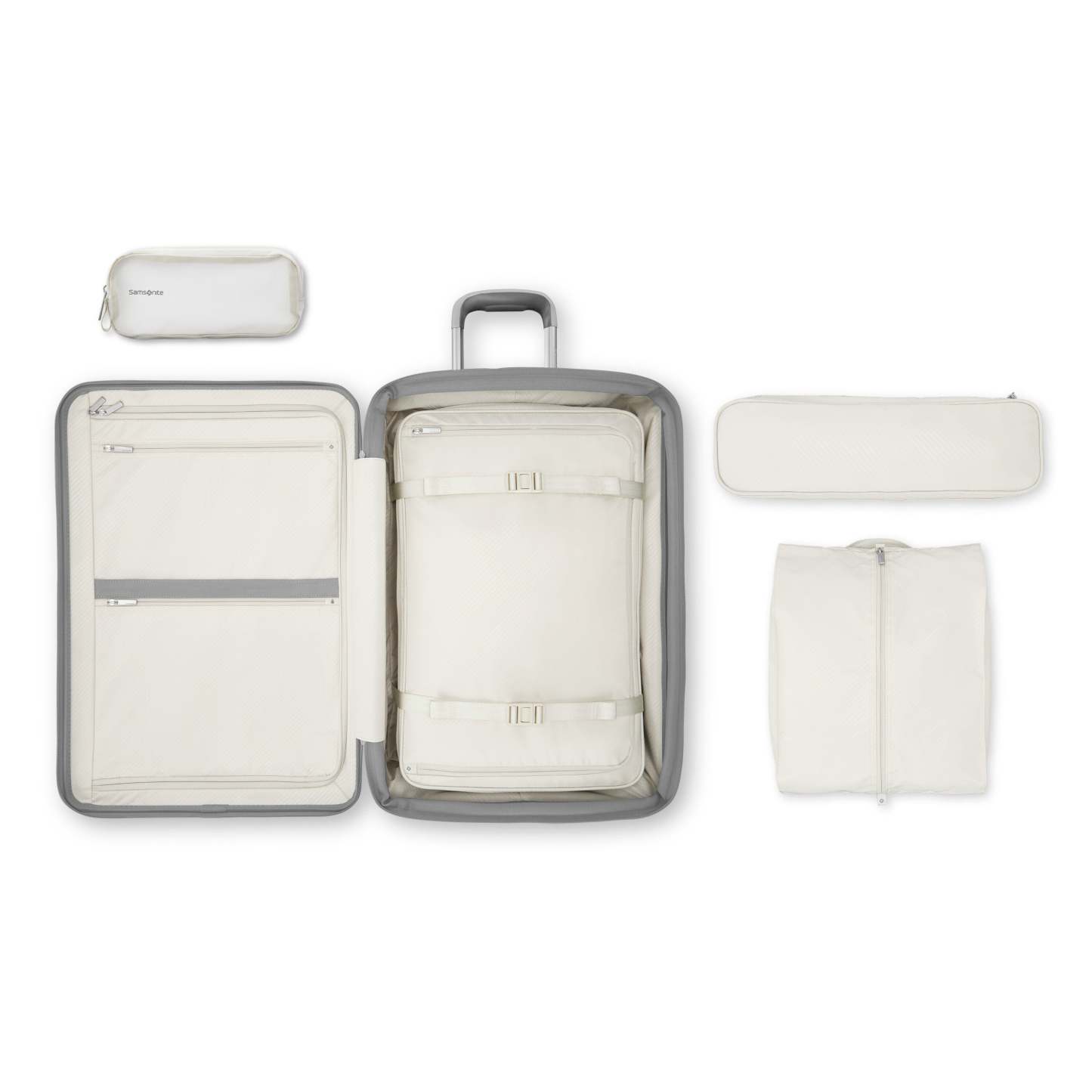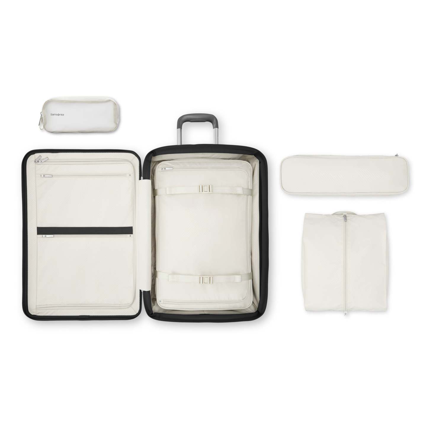 - Included inside: Crush proof packing cube that also works as a compression panel, Slim packing cube that perfectly fits between the trolley tubes, pack-flat shoe bag