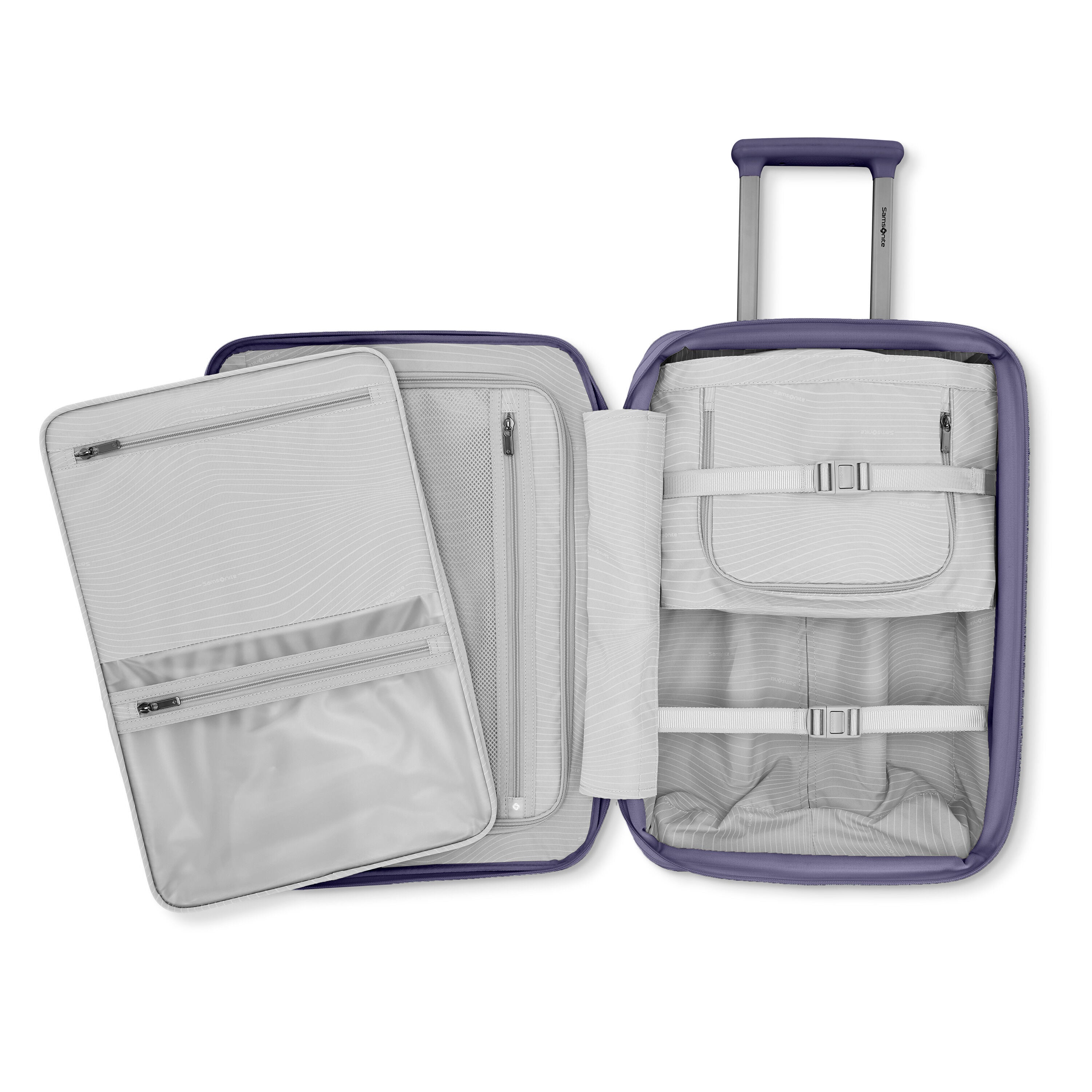Sleek, chic, and ultra-lightweight, the Venue X Carry-On balances style and function. At just 5.7 lbs, organization is seamless with the integrated KompressPak™ divider, WetPack™ and expandable packing cube ideal for shoes, clothing or even small accessories. Dual spinner wheels give you the freedom to move effortlessly through city streets, while a discretely hidden trolley hook makes carrying extra bags a breeze.