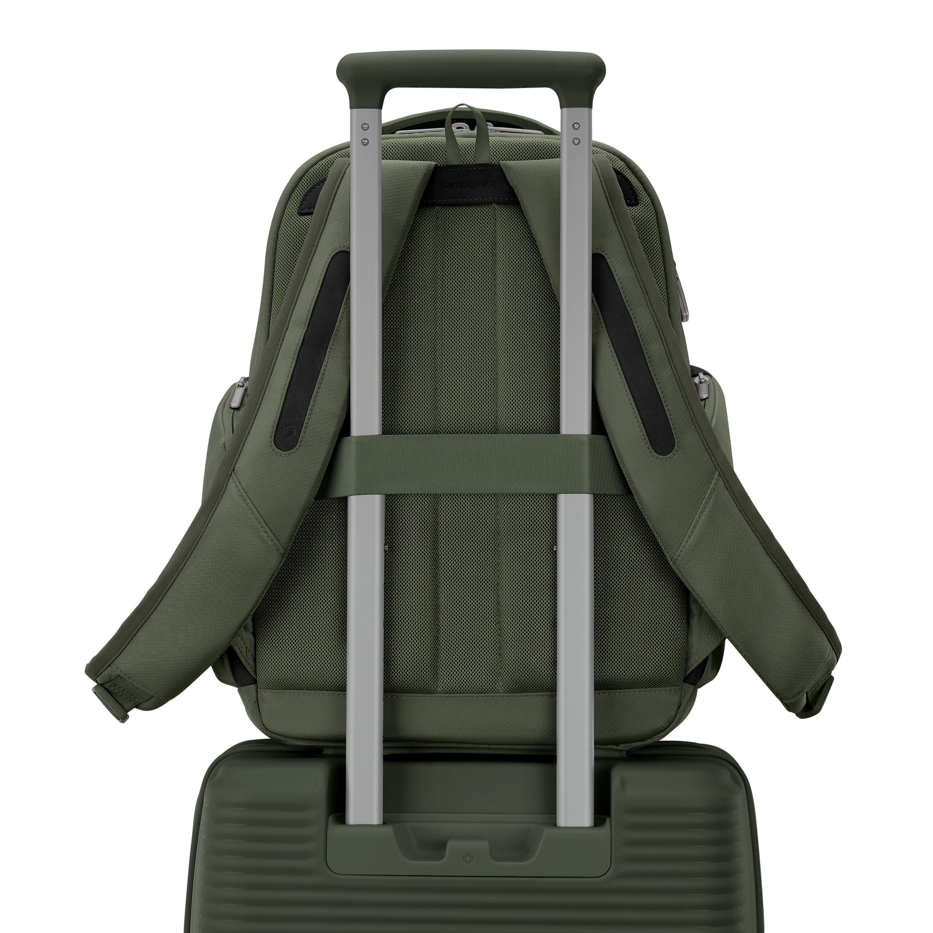 Compact yet sophisticated, the Paralux Everyday Backpack is made for everything you need when you need it. The five-compartment design features a secure slip pocket on the front, a large main compartment in the middle, a dedicated laptop/tablet compartment in the back, and a separate file compartment with dedicated organization inside.